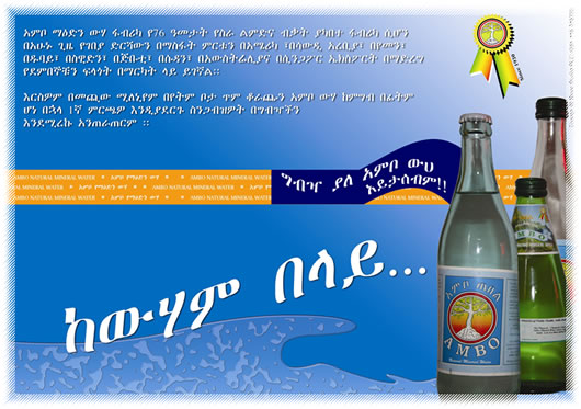 Ambo mineral water needless to say is naturally healing Water rich with a variety of minerals such as calcium, magnesium, potassium, iron etc. We have more than 77 years of services to our nation in making this curative carbonated and refreshing mineral water. Ambo Mineral Water Factory is one of the few modern state owned beverage factories in Ethiopia that has reached its diamond jubilee. This makes it not only the pioneer mineral water factory but also time tasted, enduring and unbeatable, hence the factory popularity has been enhanced in the mean time. From all local beverage market, Ambo Mineral Water has 85% share which reflect its leading role in the local beverage market. We do not advertise Ambo mineral water but we advise you to refresh your self with the finest mineral water as it can be realized from its ever growing popularity not only at home but also abroad. Ambo mineral water has the most successful brand name in Ethiopia and in the international market. Hence, Ambo mineral water has managed to carve up its own niche with quality that has proved irreplaceable in countries such as the Middle East, North America, Australia, Sweden, South Africa, Djibouti and the like. The secret of its success is not so secret after all: Ambo natural mineral water is a natural mineral water that is born from a unique climate and natural environment. This is what makes it the most refreshing spring mineral water that tastes and feels new every time when you drink it. The taste of Ambo is, therefore, in its drinking and quenching all those who have tasted and liked it. So you will not be exceptional. |